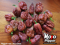 This is a real monster! The Nagabrain Chocolate is a very hot chilli pepper. It's a Dorset Naga and 7 Pot Brain Strain and my plants produced this very gnarly pods version with a lot of capsaicin inside